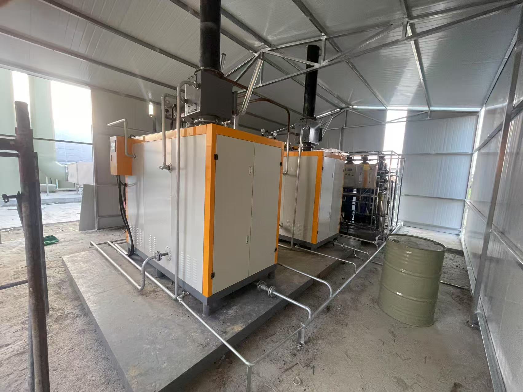 這是第二個項目、如皋廚房垃圾處理設備安裝工地實景!配套2臺500公斤免檢蒸汽發生器。